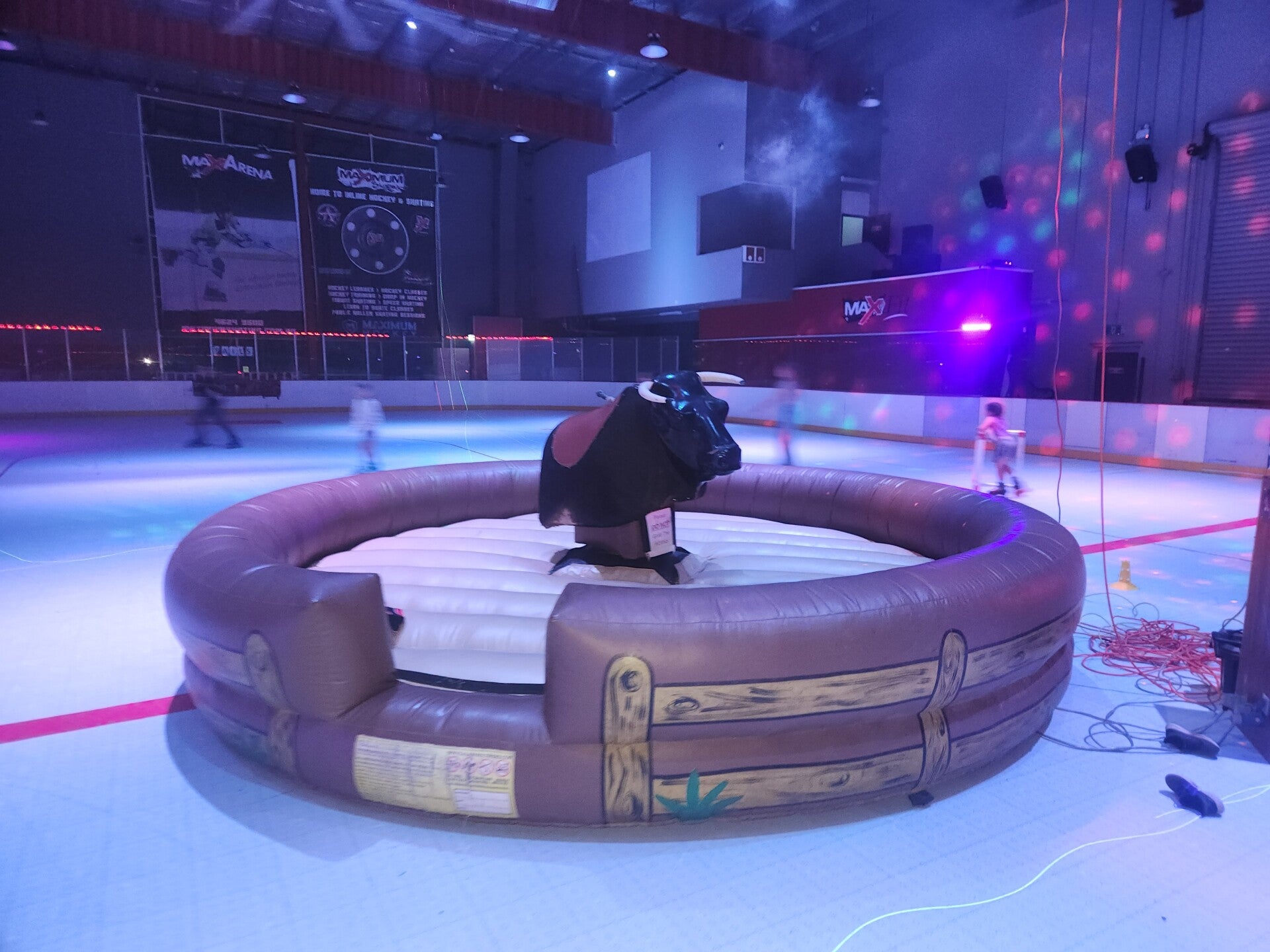 To ensure the best and safest experience, our mechanical bull requires a minimum of 6 by 6 metres of flat ground and 3 metres of head room. We need a power supply, preferably not on the same circuit as DJs or other high-draw equipment, as the unit draws a lot of power (11 amps for the bull and 7 amps for the blower). We also offer generator hire if required. Please note, we cannot operate in the rain, and we need a minimum of 900mm width to access your area; stairs aren't favourable for setup.